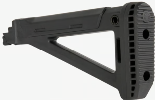 An angled, serrated toe allows for easy mounting of the rifle, while a slight curve at the top ensures positive, comfortable seating on the shoulder during firing.