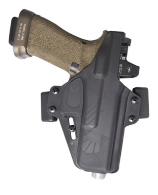 The Perun is designed to be the best modular OWB “pancake” style holster on the market. It has a body-hugging design that rides high for maximum concealment. The body of the holster is only slightly larger than the pistol contained in it. This small size aids in concealment while also making the holster more comfortable while seated in a vehicle.