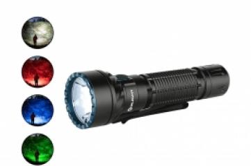 ● Olight first flashlight delivering normal white light and 3 helpful RGB lights for night vision protection, investigation, or signaling ● Ideal for directing traffic or marking a potential danger with the included traffic wand ● Max 1750-lumen o