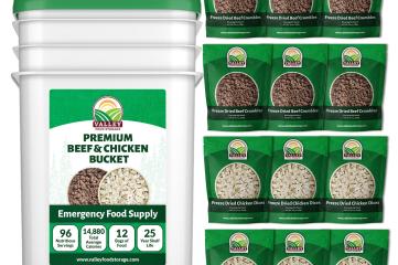 This bucket contains a hearty selection of freeze-dried meats, including chicken, sausage, and beef. Freeze-dried protein is always difficult to find, so grab some while you can.